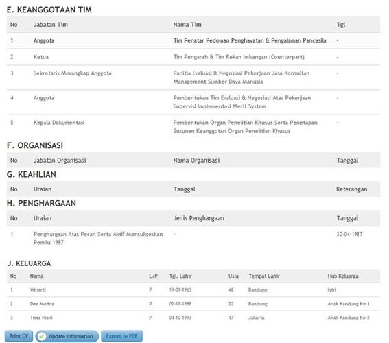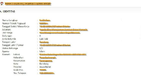 Dengan komponen item Riwayat Hidup Karyawan , sebagai berikut :