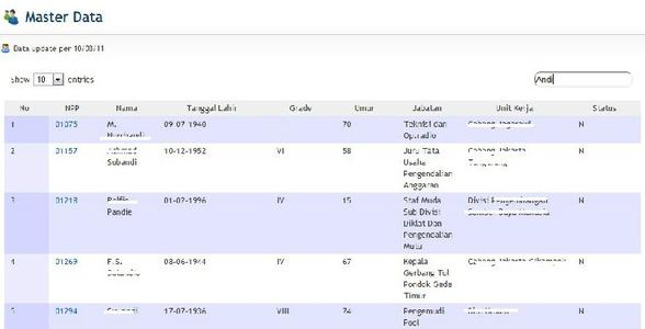 Pada modul data karyawan, user dapat mencari karyawan berdasarkan NPP, Nama, Tanggal Lahir.