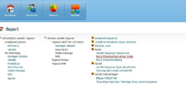 Menu ini menampilkan daftar laporan yang sudah dapat digenerate melalui sistim. Laporan tersebut antara lain :
