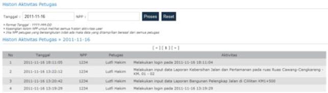 - Print Out untuk Inspeksi Rutin Perkeras Lentur dan Kaku , yang telah di input oleh Inspektor dilapangan.