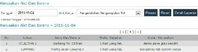 - Print Out untuk Inspeksi Rutin Kebersihan Gerbang Tol, yang telah di input oleh Inspektor dilapangan.