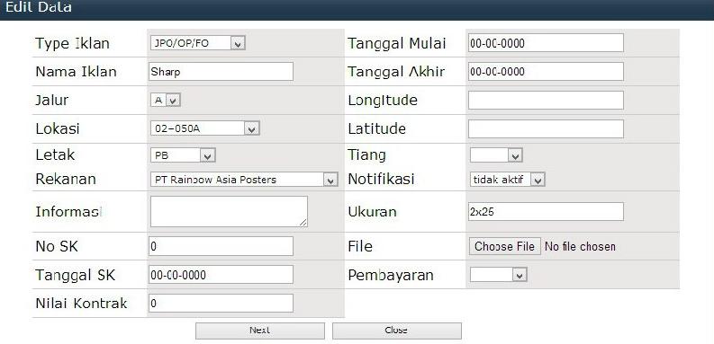 - History Reklame, Form yang berfungsi untuk melihat history perubahan reklame .