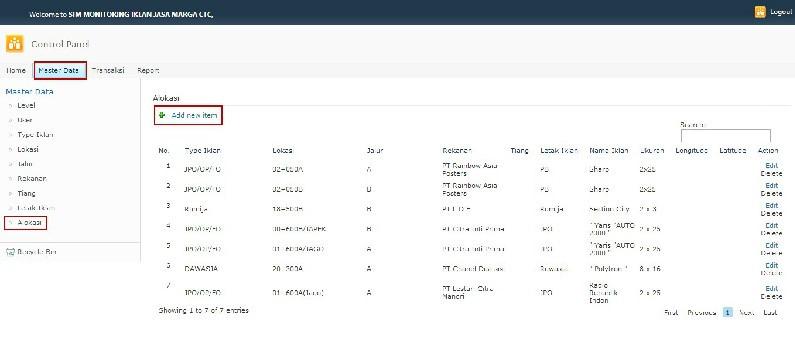 - Daftar Reklame, Form yang berfungsi view untuk melihat data yang sudah dimasukkan dalam bentuk tabel dan mempunyai fasiltas search berdasarkan periode dan lokasi.